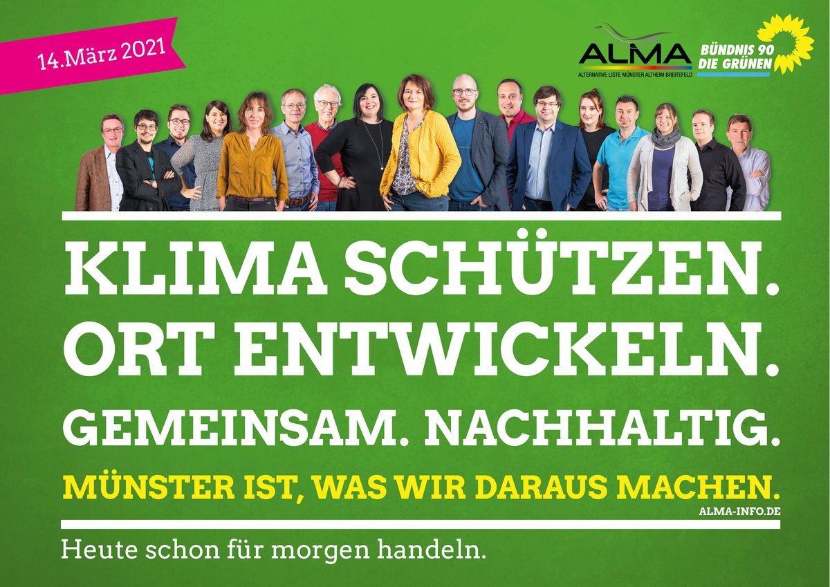 Was wir noch zu sagen haben finden Sie ausführlich auf der Seite des Wahlprogramms. Ausser unserer 6 Spitzenkandidat*innen haben wir noch eine Menge mehr Menschen die sich gemeinsam mit uns für Münster, Altheim und Breitefeld engagieren. Wenn Sie uns alle kennenlernen möchten, dann schauen Sie hier vorbei! Im Archiv finden Sie alle Impulse der letzten Legislaturperioden die wir in unserer parlamentarischen Arbeit und unserem ehrenamtlichen Engagement gegeben haben.