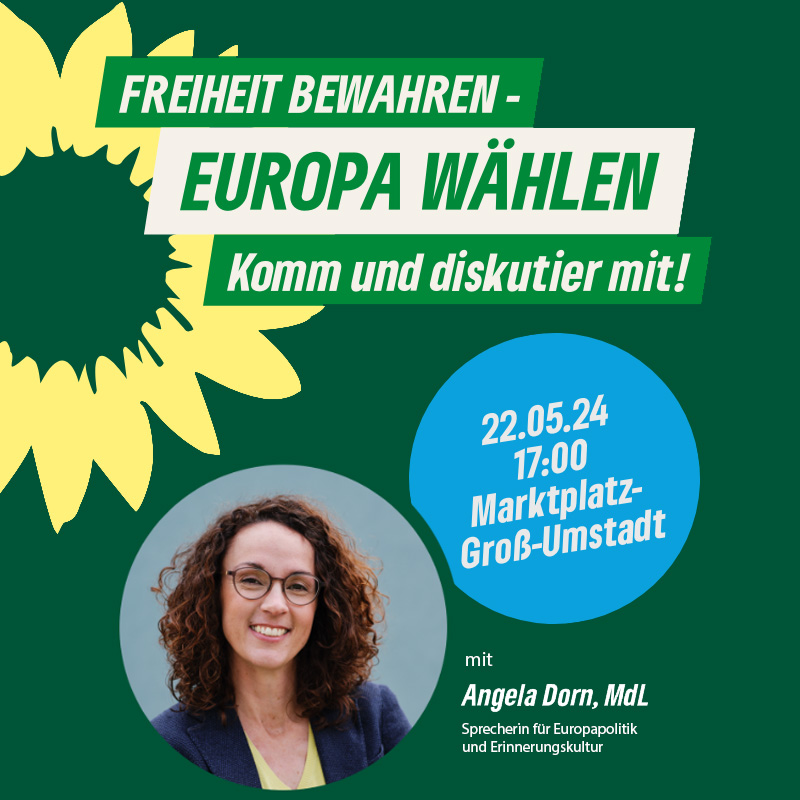 Auf dem Marktplatz in Groß-Umstadt wird Angela Dorn ab 17.00 Uhr darüber sprechen, wie Europa heute Frieden und Freiheit schützen kann. Die europäische Vision von Frieden, Demokratie und Rechtstaatlichkeit ist Ungewissheit, Sorgen und Ängsten gewichen. Der russische Angriffskrieg auf die Ukraine richtet sich gegen den Willen der Ukrainer*innen, in Frieden und Freiheit zu leben. Er richtet sich aber auch gegen international verankerte europäische Werte wie Demokratie, Rechtsstaatlichkeit und Menschenrechte und erinnert uns daran, welchen Schutz die Europäische Union für uns alle bedeutet. Deshalb setzen wir uns für ein gemeinsames Europa ein. Die europäische Idee ist eine beispiellose Geschichte für Frieden, Freiheit und das Zusammenwachsen von Menschen unterschiedlicher Herkunft, auch und gerade hier vor Ort. Damit das europäische Projekt lebendig bleibt, müssen wir uns immer wieder neu damit auseinandersetzen, welche europäischen Werte in unserem Leben täglich eine Rolle spielen. Die Veranstaltung auf dem Marktplatz in Groß-Umstadt soll hierzu einen Anstoß geben. Im Anschluss gibt es Raum für Fragen und Diskussion. Wir freuen uns darüber, wenn Sie die Veranstaltung ankündigen und darüber berichten.