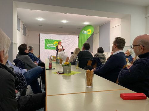 Zum Frühjahrsempfang eingeladen hatten die örtlichen Grünen den Landesvorsitzenden von B'90/Die Grünen Hessen Sebastian Schaub und die Direktkandidatin im regionalen Wahlkreis Annette Huber. Während Sebastian Schaub zum inhaltlichen Einstieg in den Abend den Bogen von der Landes- zur Bundespolitik spannte, dabei aber stets die lokalen Interessen des ländlichen Raums einbezog, begründete Annette Huber ihr Engagement und ihre Kandidatur mit einem sehr persönlichen Statement zur Bedeutung auch individuellen Handelns zur Wahrung einer lebenswerten Umwelt.